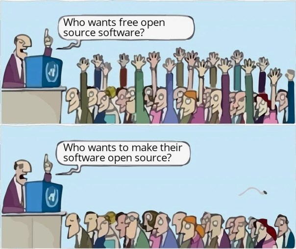 Although this is a joke, I’m going to give humanity a high-five because, compared to when I started in technology, which was more the Microsoft Halloween memo era, to where we are today, I’m so impressed that so many makers, creators, designers, engineers, and leaders have adopted the moral framework of open source being part of their calling. Businesses, too! I used to get laughed out of the room or had spears thrown at the security of open source, but that is no longer a blocker, and the conversation has really elevated. It doesn’t feel like one person raising their hand anymore; it’s grown into a truly special movement, a lens through which you can view almost anything.